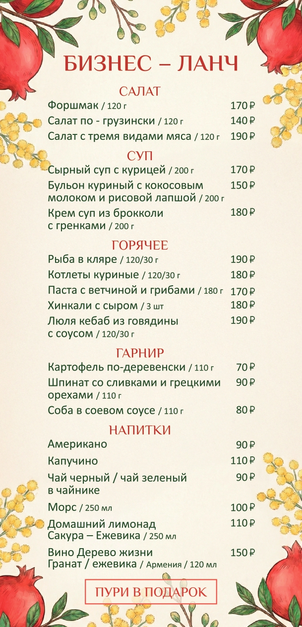 У нас вы найдете вкусные блюда грузинской и европейской кухни, отличное обслуживание, гостеприимную атмосферу и развлечения для всех - от самых маленьких до самых взрослых гостей!